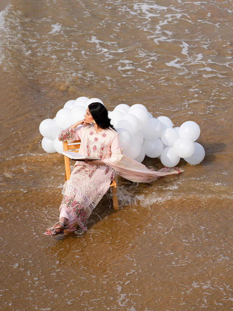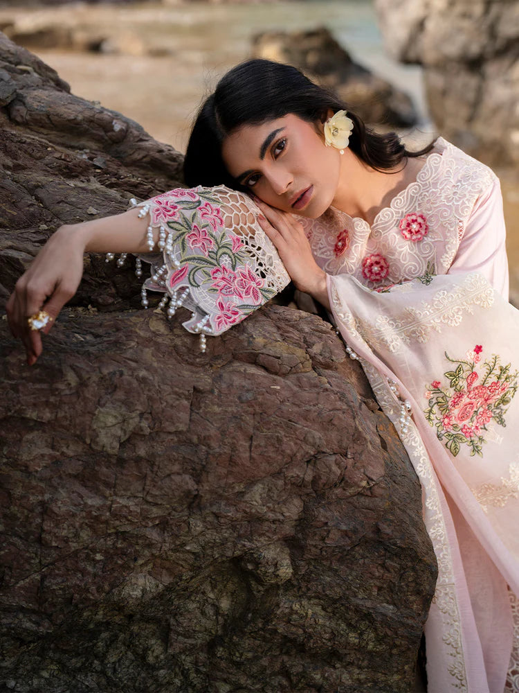 MAHNUR-3PC LAWN LASER WORK EMBROIDERED SHIRT WITH KHAADI NET EMBROIDERED DUPATTA AND TROUSER-W.J-4762